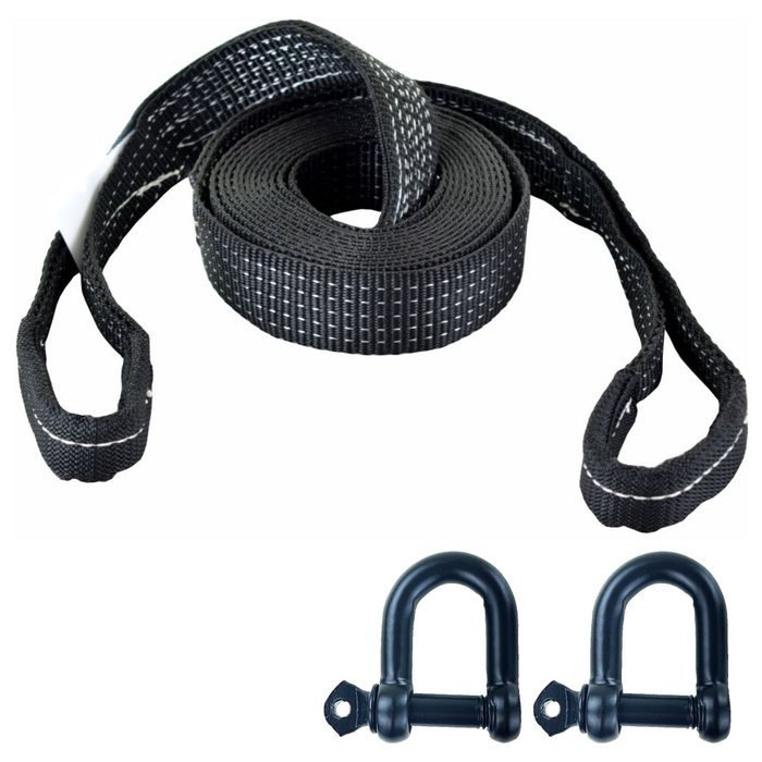 Cinta Fita para Reboque e Arraste Budin - 5 Toneladas - 1 Metro - Manilha 1/2 - para Puxar Carros, V Preta