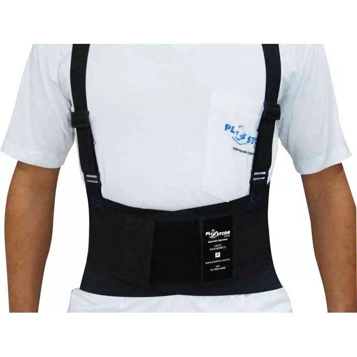 Descrição Confeccionado em elástico de compressão preto e alças de elástico ajustáveis através de passadores. Fechamento através de velcro. Indicado para o trabalhador ou qualquer pessoa, em atividades onde haja movimento de flexão, levantamento de peso, carregamento e descarregamento de materiais, exercícios físicos, enfim para serviços pesados e com movimentos intensos da coluna. Especificação técnica Referência aproximada de tamanho: P-36/38 M-40/42 G-44/48 GG-50/52 XG-54/56