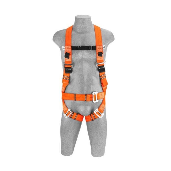 Pq pfrs - cinto de segurança tipo paraquedista confeccionado em fita de poliéster de 45mm e fita secundária de poliéster de 25mm. Possui 2 pontos de conexão, sendo 1 ponto simultâneo frontal em fita para retenção de queda, 1 argola dorsal para retenção de queda, possui 2 fivelas em aço para regulagem do suspensório, 1 fivela em aço para regulagem da cintura, 2 fivelas em aço para regulagem das coxas e 1 fivela em plástico para regulagem peitoral. O cinturão pode ser utilizado com os seguintes acessórios: talabarte de segurança: 1) talabartes de proteção contra queda ce abs 55 fr; ceabselast 55 fr; ce abs fr fr; yce abs 55 fr; yceabselast 55 fr; yceabselast 110 fr; ypa abs 55 fr. 2) trava-queda deslizante: 0805tqc. “este equipamento deverá apresentar o selo de marcação do inmetro”.