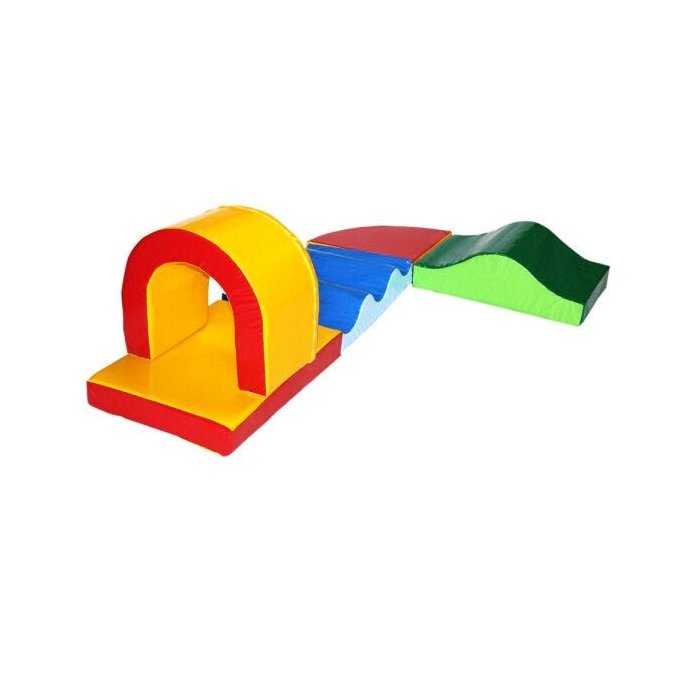 É composto por quatro peças espumadas que proporcionam diversão com segurança para as crianças. A espuma é não tóxica de alta densidade D20 e é revestida com tecido Vini Bagum 500, brilhante e de fácil higienização.