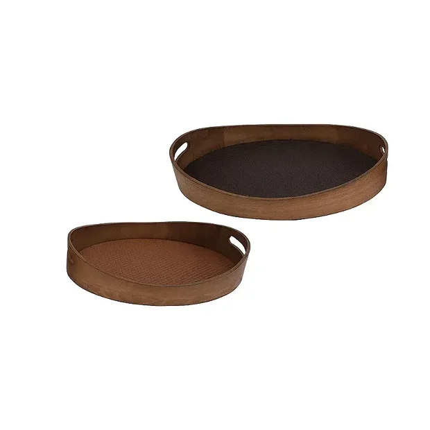 Elegância e funcionalidade em um único conjunto. As bandejas são confeccionadas em madeira de alta qualidade com revestimento em couro sintético marrom e interior preto, proporcionando um visual moderno e sofisticado. O contraste de cores valoriza a peça e permite diversas composições na decoração.