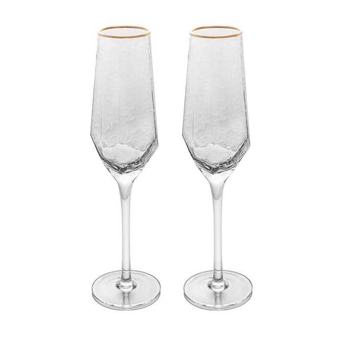 Cj 2 Taças de Cristal P/champagne C/fio Dourado Taj 300ml Wolff