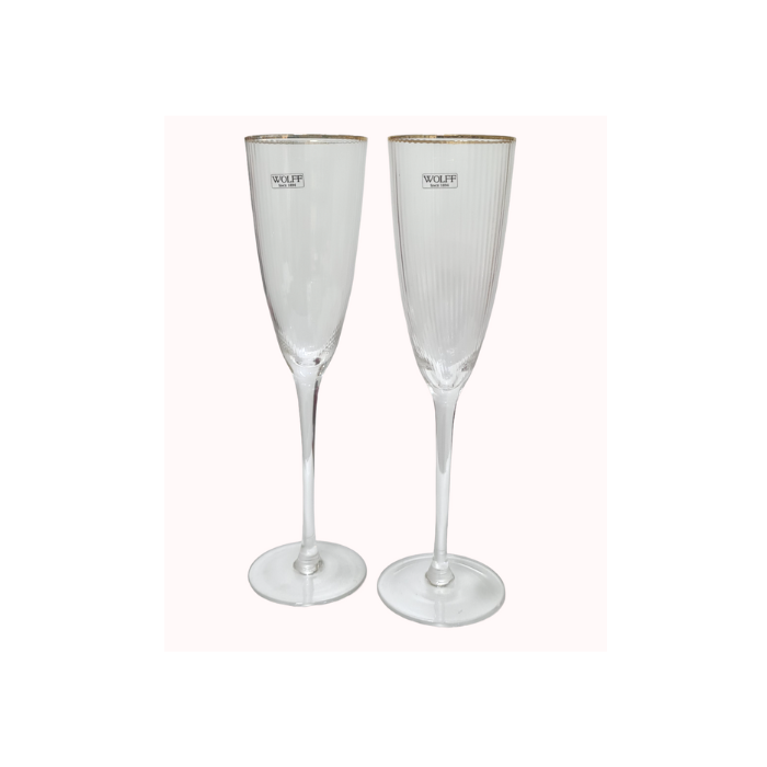 CJ 2 TACAS DE VIDRO P/CHAMPANHE C/BORDA DOURADA LINES 300ml wolff 29128
