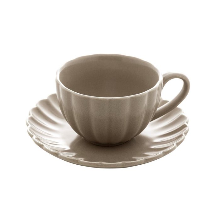 Cj 2 Xícaras Chá Porcelana C/Pires Pétala Cinza Matt 160Ml