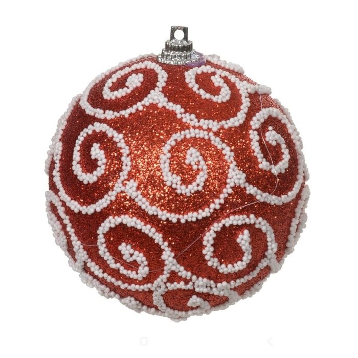Cj 3 Bolas Decorada Natal com Glitter Vermelho e Branco 8cm