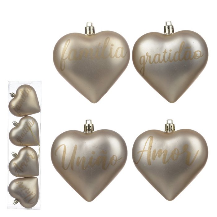 CJ 4 Enfeites de Natal Coração Fosco Champanhe 8cm -