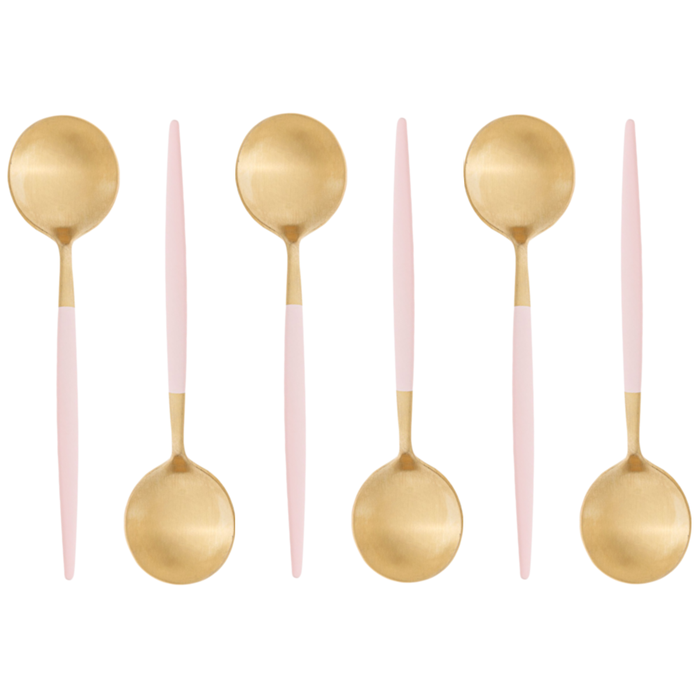 Cj 6 Colheres de Sobremesa Aço Inox Ópera Champanhe Rosa Lyor