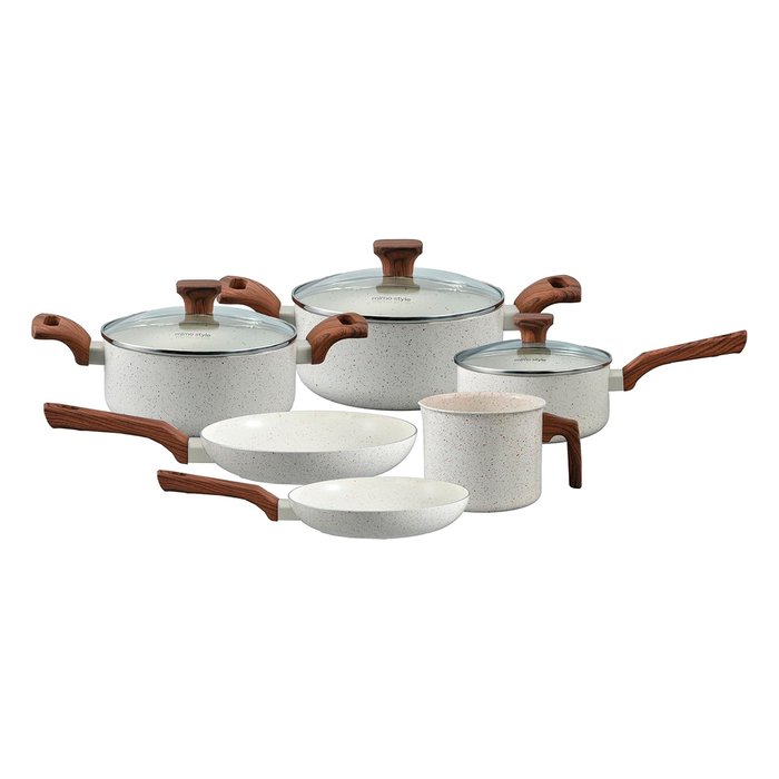 Conjunto de Panelas Indução 6 Peças Pratic Cook Marmol Vanilla - Mimo Style