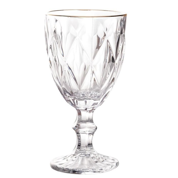 Cj 6 Taças P/água de Vidro C/fio de Ouro Diamond 325ml