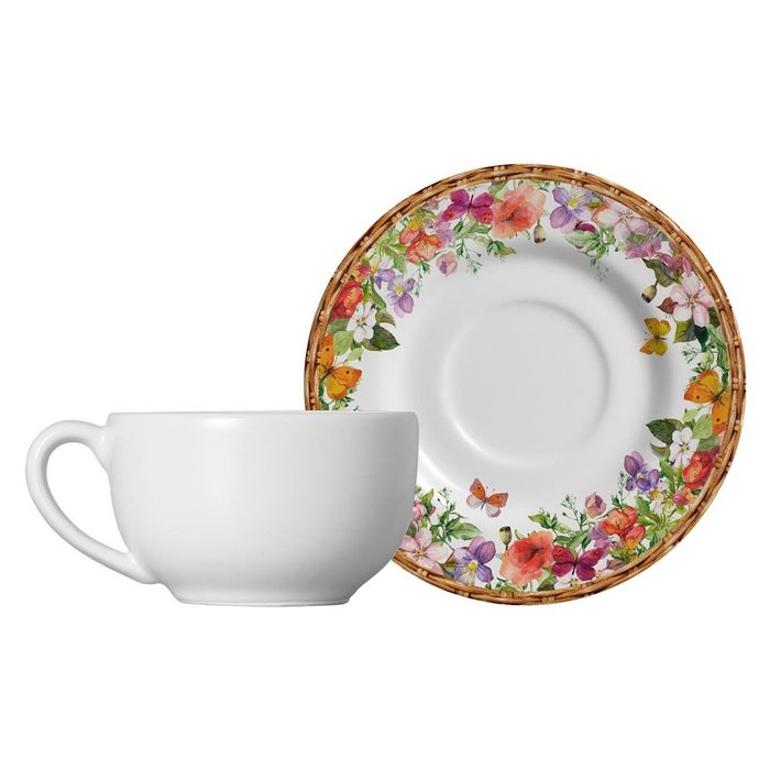 Cj 6 Xícaras 200ml c/ Pires Flores Rattan - Alleanza
