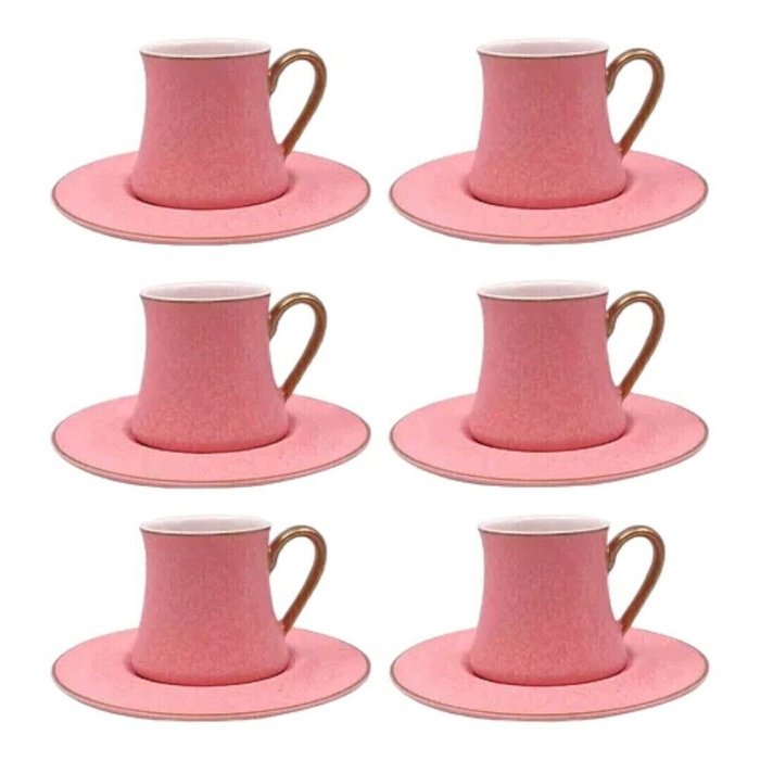 Cj 6 Xícaras P/café C/pires de Porcelana Rosa C/aça Dourada Galet 80ml L'hermitage