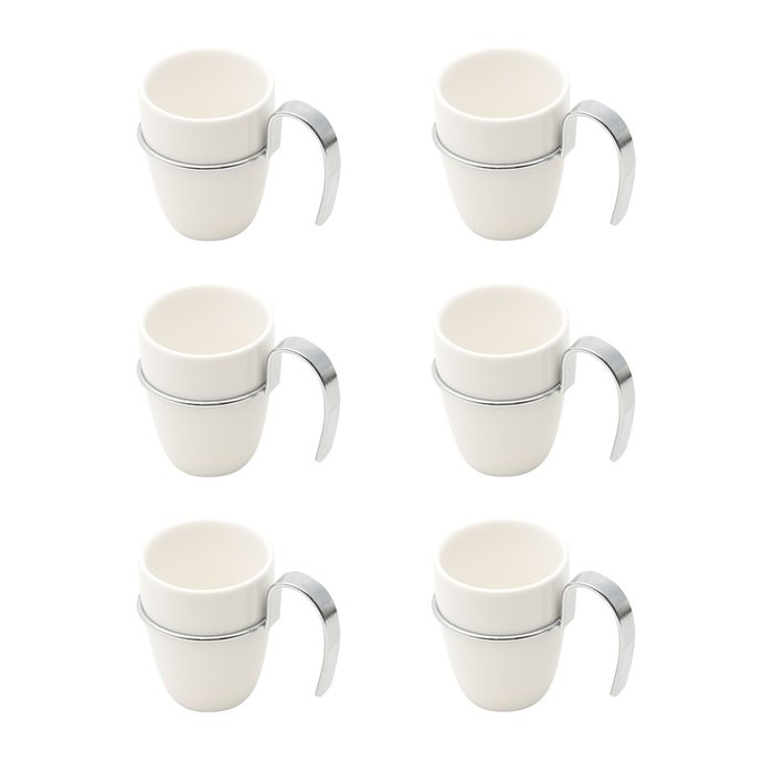 6 Xícaras P/Café de Porcelana Branca C/Alça de Metal 75ml