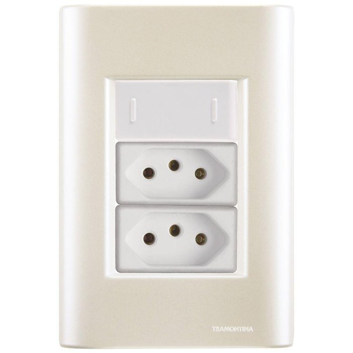 Cj Interruptor e Duas Tomadas 10A e 20A Giz Pérola Tramontina completo pronto Tramontina -