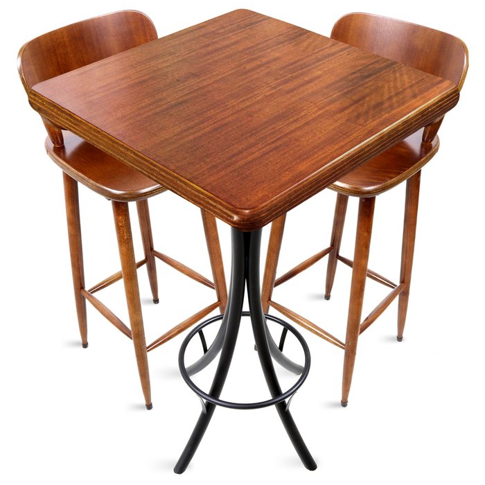 A base bistrô é feita em aço carbono acabada em 3 etapas, decapante, antiferrugem, e acabamento. A pintura é feita em esmalte sintético preto semi-fosco, deixando o suporte com uma textura lisa e uniforme. Os pés da base da mesa bistrô possuem reguladores de altura, podendo ser regulado em piso desnivelado evitando que a mesa vibre e fique bamba. Até mesmo em calçadas externas é possível colocar a mesa bistrô de forma segura e confortável!