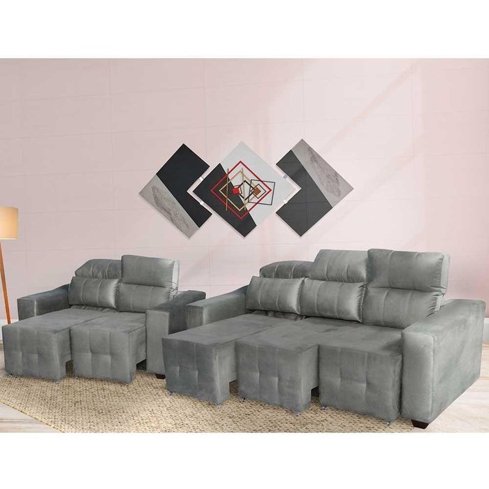 Cj Sofá Alfa 2 E 3 Lugares Retrátil Reclinável Cinza Cinza