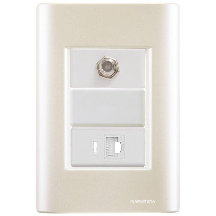Cj Tomadas Rj45 Ethernet + Tv Coaxial Giz Pérola Tramontina Completo Pronto Tramontina