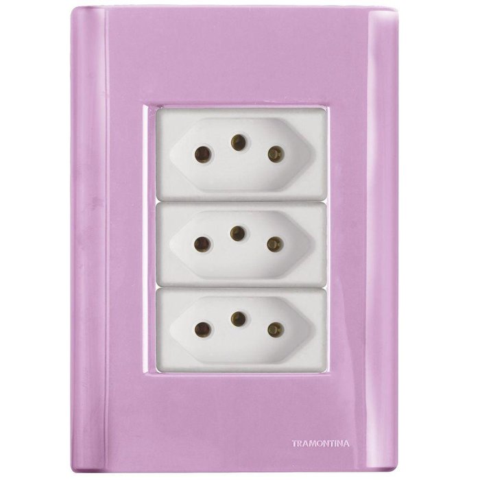 Cj Três Tomadas Tripla 10A Giz Rosa Tramontina completo pronto Tramontina -