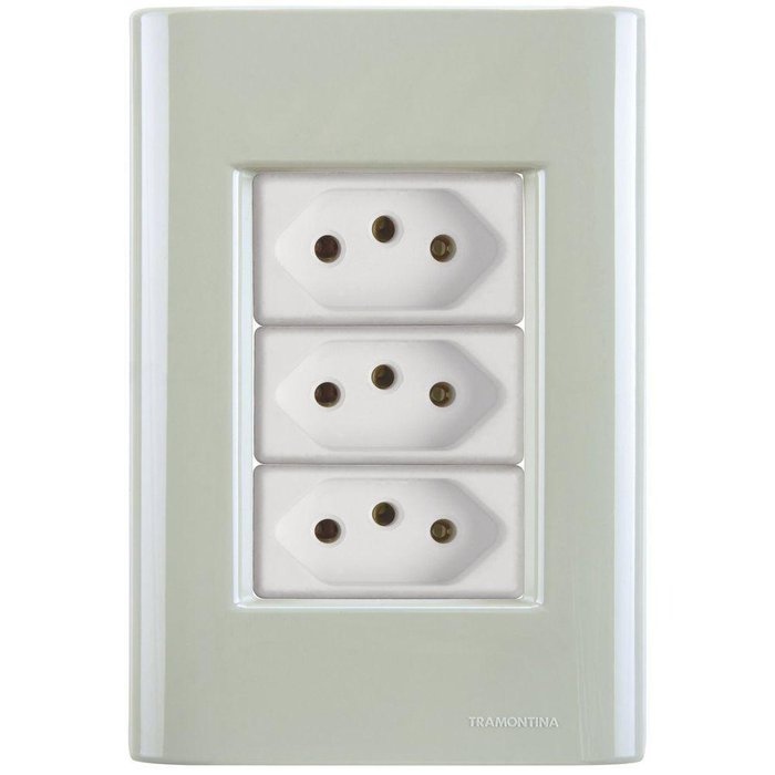 Cj Três Tomadas Tripla 10A Giz Verde Ardósia Tramontina completo pronto Tramontina -
