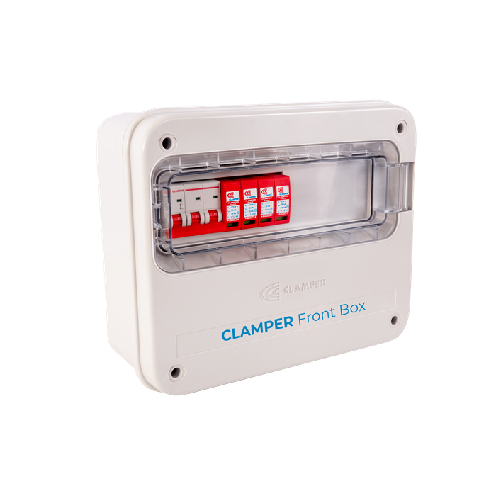 O CLAMPER Front Box é uma solução de seccionamento, proteção contra surtos elétricos e proteção contra sobrecorrentes temporárias para aplicação no lado de corrente alternada de inversores e micro inversores em sistemas de geração de energia solar fotovoltaica. Com a CLAMPER, você simplifica e reduz o custo das instalações, além de proporcionar mais vida útil para os sistemas, evitando gastos indesejados pelos clientes, com manutenção ou substituição de equipamentos e paradas na geração de energia. Conte com as soluções de quem é especialista e líder de mercado!