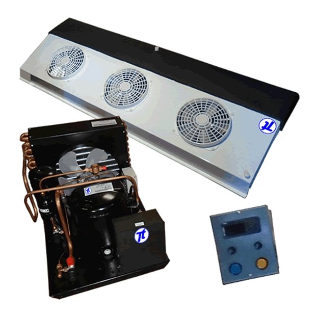 • Composição do kit: condensadora com visor de liquido, pressostato, filtro secador e tanque de liquido; unidade evaporadora com válvula de expansão, válvula solenoide, revestimento antigotejamento e antisudação; painel de controle com caixa de acondicionamento, controlador digital, interruptores on/off e fusíveis de proteção; manual de montagem