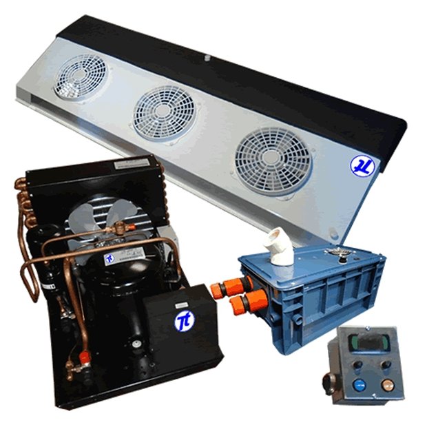 • Composição do kit: condensadora com visor de liquido, pressostato, filtro secador e tanque de liquido; unidade evaporadora com válvula de expansão, válvula solenoide, revestimento antigotejamento e antisudação; painel de controle com caixa de acondicionamento, controlador digital, interruptores on/off e fusíveis de proteção; manual de montagem