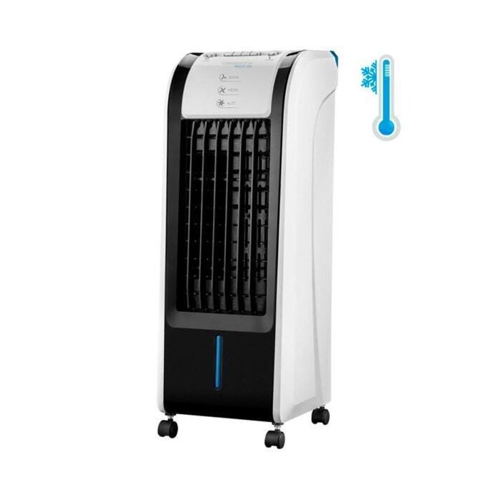 Possui Sistema cooling pad com filtro colméia: Quando congelado e colocado no reservatório, aumenta a sensação de frescor, utilizando a evaporação da água para refrescar o ambiente naturalmente, sem ressecar o ar.