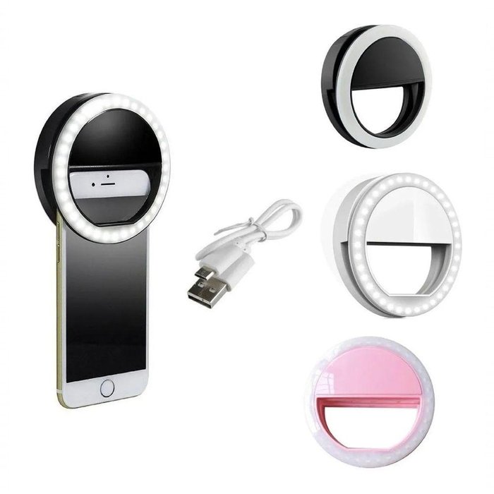 Clipe Anel Led Luz Selfie p/ celular - BRANCOA luz de selfie anel luminoso em LED mais conhecido como Ring Light é ideal para tirar fotos em locais com pouca luz e encaixa no seu celular. A câmera fica bem no espacinho vazado, super simples de usar, tem com um botão que você usa para ligar, desligar e controlar a intensidade da luz (Três intensidades, fortes). Utiliza duas pilhas tamanho AAA. Com ela suas selfies ficarão incríveis. Especificações:Dimensão: 84*84*28mmMaterial: PlásticoBateria: 2 Pilhas AAA (não inclusas)Peso: 70g36 luzes LEDClipe de espessura: 1cmUse 360°light para destacar o seu rosto e fazer o seu rosto efeito estéreoPode ser aplicado a qualquer smartphone/laptop/câmera Ou uso independente