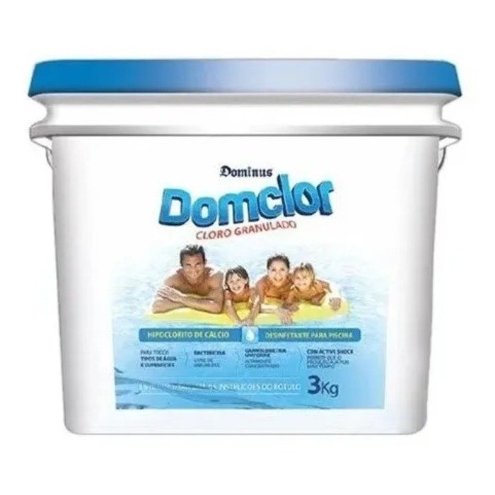 MODO DE USAR / APLICAÇÃO: 1. Meça o pH, verificando se este encontra-se na faixa entre 7,2 a 7,6. Ajuste se necessário. O ideal é mantê-lo em 7,4. 2. Meça a alcalinidade total, verificando se a mesma se encontra entre 80 e 120 ppm. Ajuste-a se necessário. 3. Com o sistema de ltração em funcionamento na posição ltrar, aplique 4 gramas de Cloro Granulado Domclor para cada m³ (1000 L) de água, dissolvendo o produto com água da própria piscina em um balde plástico previamente limpo e aplicando ao longo das laterais conforme necessidade, de preferência no nal da tarde para noite. 4. Em caso de água turva, odores desagradáveis ou irritações nos olhos, ajuste pH e alcalinidade para as faixas ideais e posteriormente, faça uma supercloração com 14 gramas de Cloro Granulado Domclor para cada m³. 5. Meça o teor de cloro livre no dia seguinte. Somente permita a entrada de pessoas na piscina quando o residual do cloro livre estiver na faixa de 2 a 4 ppm. 6. Filtre a água diariamente por um período mínimo de 6 horas. 7. Para o controle efetivo sempre dissolva o produto antes da aplicação. Não utilizar em água de consumo humano. PRECAUÇÕES DE USO: CONSERVE FORA DO ALCANCE DAS CRIANÇAS E DOS ANIMAIS DOMÉSTICOS. - Não ingerir. - Evite inalação ou aspiração, contato com os olhos e contato com a pele. - Usar luvas para sua aplicação. - Não utilizar para desinfecção de alimentos. - Não misturar com outros produtos. - Manter o produto em sua embalagem original, não reutilizar as embalagens.