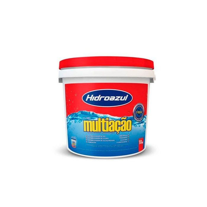 Cloro multifuncional, azul. Granulado com dissolução rápida, muito prático porque reúne várias funções em um único produto:- Forte ação Desinfetante; Algistático com proteção contínua;- Fungicida;- Estabilizador de cloro com proteção prolongada;- Oxidante de matéria orgânica gerando maior rendimento;- Clarificante que auxilia o processo de floculação de sujeiras deixando a água cristalina;- Não altera pH nem altera Alcalinidade mantendo o equilíbrio químico da água.Modos de uso:1) Dosagem Inicial de Estabilização:Verifique se a alcalinidade total da água e o pH estão corretos. Corrija-os se necessário utilizando os produtos Hidroazul específicos. Adicione, diariamente, 3 gramas de Cloro Multi-ação Hidroazul para cada 1000 litros de água a ser tratada. Atenção: Após, aproximadamente 4 semanas de uso contínuo, o cloro deverá se estabilizar na água. Isso se evidenciará quando o residual medido na manhã for superior a 3 ppm,sendo possível então, a redução da cloração e o início da fase de rotina. 2) Dosagem de Rotina:Verifique se a alcalinidade total da água e o pH estão corretos. Corrija-os se necessário utilizando os produtos Hidroazul específicos.Adicionar, em dias alternados, 3 gramas de Cloro Multi-ação Hidroazul para cada 1000 litros de água a ser tratada. Meça o cloro residual no dia seguinte, utilizando o Kit de Testes Aquachek Hidroazul. O residual de cloro encontrado deve estar na faixa de 1 a 3 ppm e, se necessário, aumente ou diminua a dosagem. Dosagem de Choque:A dosagem de choque é necessária quando a água estiver colorida, turva ou com odor desagradável.Verifique se a alcalinidade total da água e o pH estão corretos. Corrija-os se necessário utilizando os produtos Hidroazul específicos.Adicione 15 gramas do Cloro Multi-ação Hidroazul para cada 1000 litros de água. Distribua uniformemente o produto na água a ser tratada. Aplique um decantador Hidroazul se necessário. Deixe em repouso por 12 horas e depois aspire drenando.Só utilize a piscina quando o residual de cloro for inferior a 3 ppm.