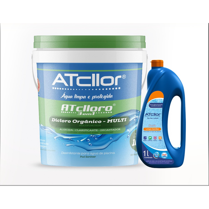 Cloro Piscina Atcllor 10kg 3 Em 1 Multiação + Limpa Borda Atcllor