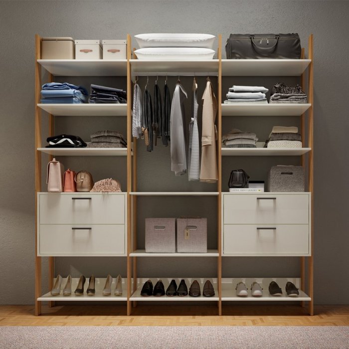 Closet 3 Torres 4 Gavetas Industrial Off White/freijó - Dalla Costa