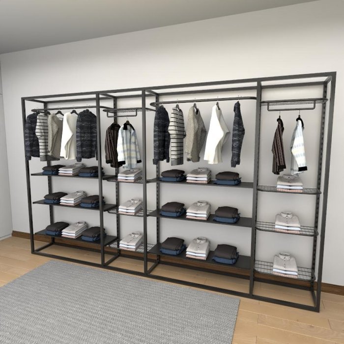 Closet araras, guarda roupas aberto industrial com 32 peças preto fdprp533