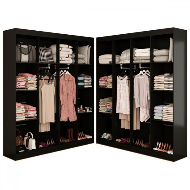 Closet Casal em L Ele e Ela 4 Metros 16 Prateleiras 4 Cabideiros Preto Fosco - Panorama Móveis Preto