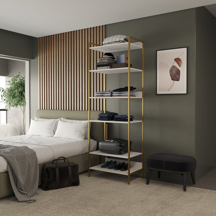 Closet Estilo Industrial 6 Prateleiras Ferro Dourado Tampo Branco