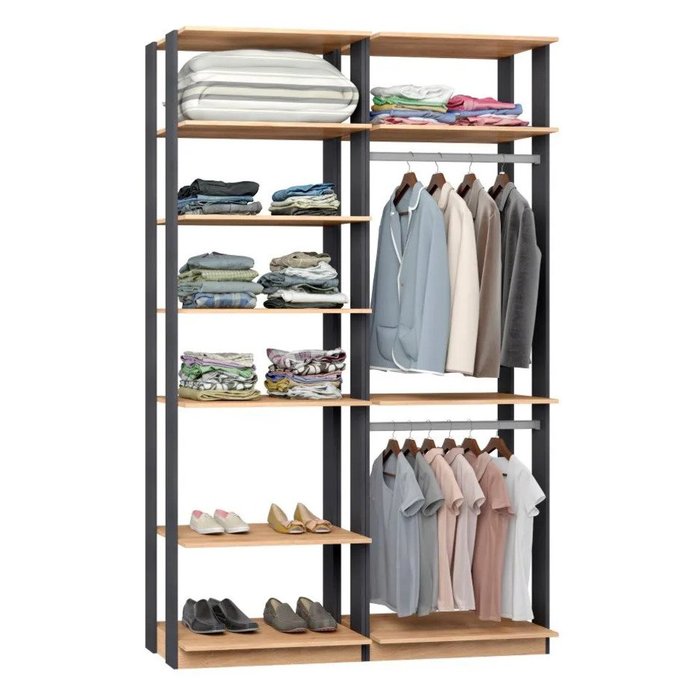 A coleção de closets da Be mobiliário foi inspirada no estilo industrial que tem se destacado e esta cada vez mais presente nas decorações contemporâneas trazendo um toque do charme urbano para dentro das casas. A estrutura aparente do móvel contrasta com o restante do ambiente e sua versatilidade faz com que possa ser utilizado avulso ou de forma componível em garagens, áreas de serviço, dispensas e closets.
