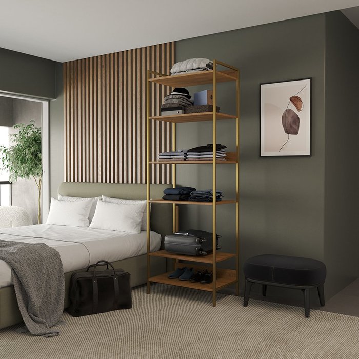 Closet Industrial 6 Prateleiras Estrutura em Ferro Dourado Tampo Canela
