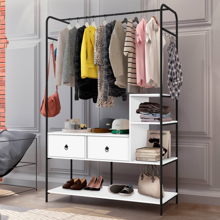 O Guarda Roupa Industrial é ideal para a organização das suas roupas, oferecendo um novo estilo de decoração. Com design industrial, possui 3 prateleiras e 2 gavetas, que ajudam a manter as roupas arrumadas. Dimensões do produto: Altura: 186 cm Largura: 120 cm Profundidade: 47 cm Informações do produto: Gavetas: Sim Portas: Não Cabideiro: Sim, comporta até 10 cabides Espelho: Não. Cor Principal: Preto e Branco Material: Armação Tubular e MDF Itens Inclusos: - 01 Guarda Roupa Industrial Mazzara; - Kit completo para montagem, manual de instruções. Garantia: 3 meses contra defeito de fabricação. Informações complementares: - Fotos meramente ilustrativas do produto no ambiente. - Os objetos que ambientam as fotos não acompanham o produto; - Verificar descrição e tamanho do produto antes da compra. - Avaliar a mercadoria no ato do recebimento e recusar em caso de divergência ou avarias. - Mantenha as informações de contato e endereço de entrega atualizados para entrarmos em contato caso necessário. - Limpar com flanela ou pano macio seco, não utilizar produtos abrasivos, desengordurantes, álcool ou solvente. Não expor o produto diretamente à luz solar e à umidade. * Sugerimos a contratação de um montador profissional para a montagem do produto. Não nos responsabilizamos por avarias causadas no ato da montagem. * Não nos responsabilizamos pela montagem e desmontagem do produto no ato da entrega e devolução, assim como os custos gerados nestas situações. * A transportadora entregará o produto no andar térreo do endereço de entrega. * Não nos responsabilizamos por subir escadas, corredores e elevadores ou transporte por guincho em apartamentos.