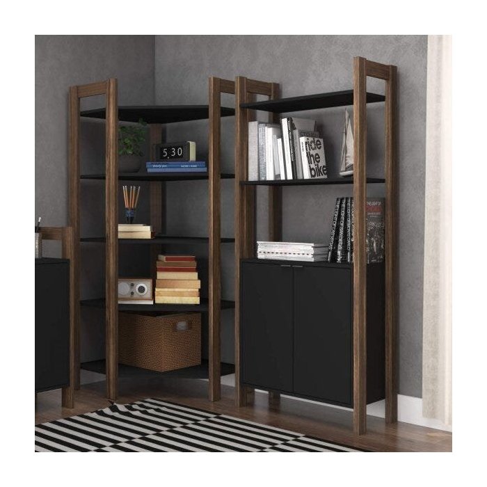 Closet Modulado Aberto 70,5x70,5cm com 5 Prateleiras Az1020 Tecno Mobili - Nogal/preto Preto/Nogal