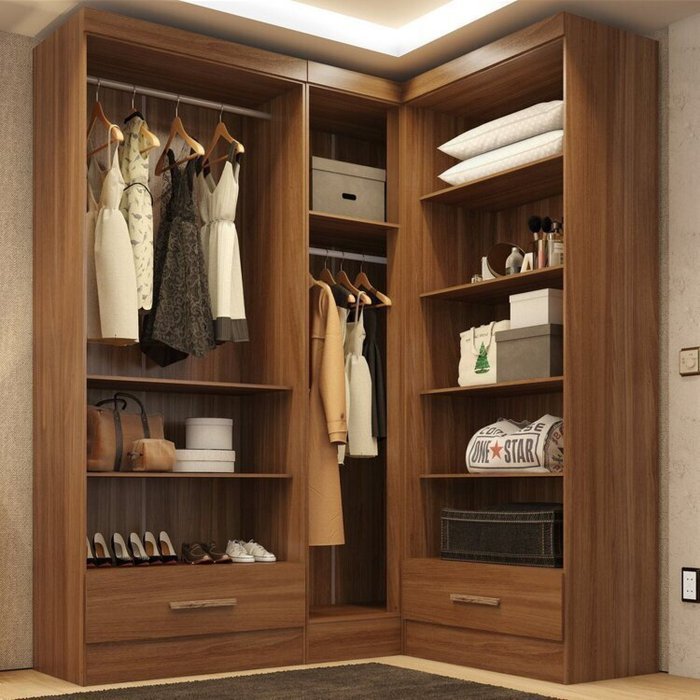 Closet Modulado de Canto 3 Peças 2 Gavetas Smart Plus Cinamomo