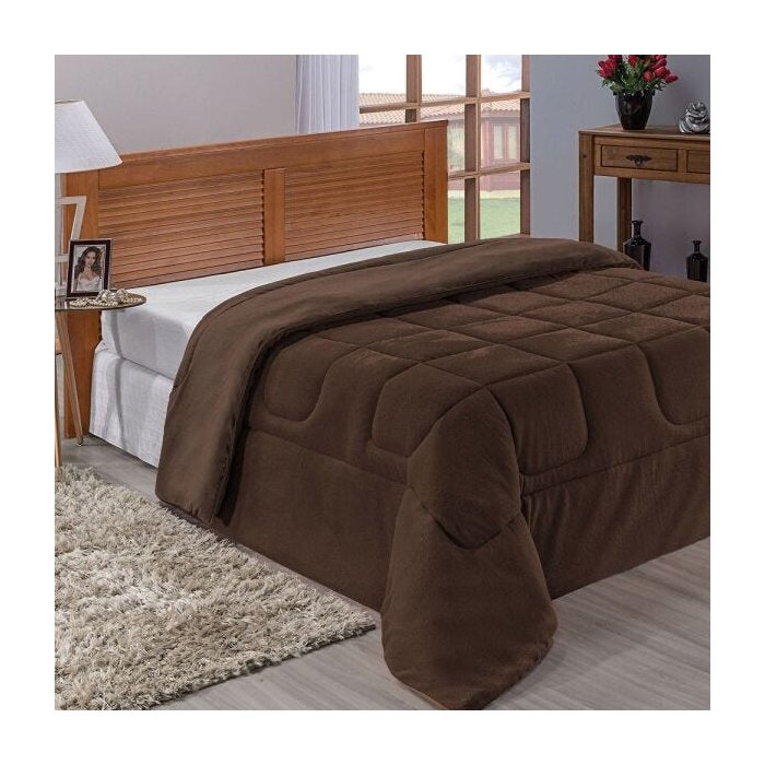 Coberdrom Casal Queen Dupla Face Manta e Malha Quentinho Confortável 1 Peça - Tabaco
