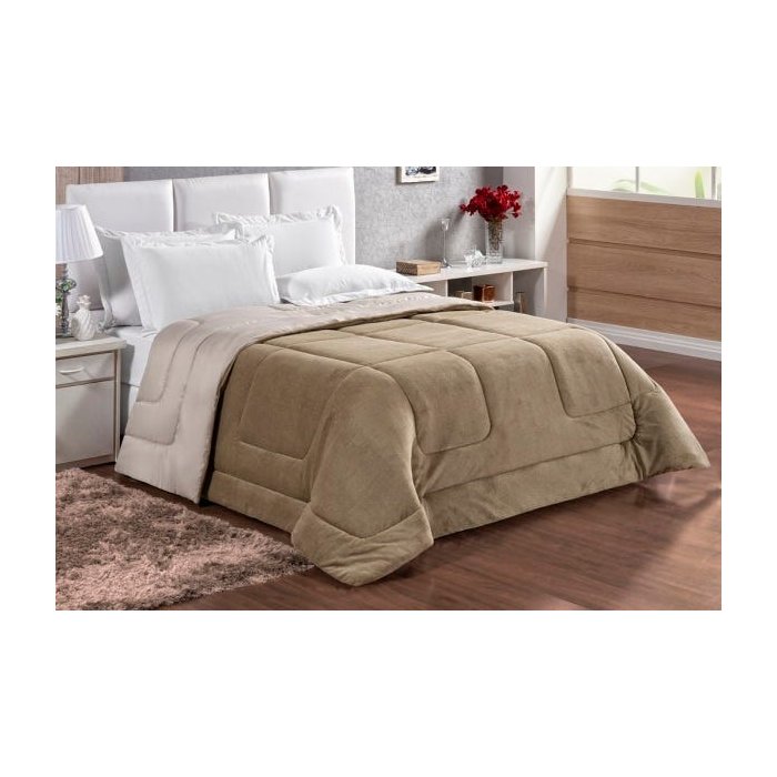 Coberdrom Casal Queen Edredom Felpudo Dupla Face Caqui