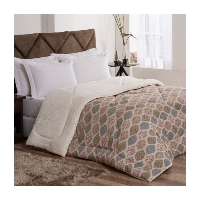 Coberdrom Casal Queen Scarpa Sherpa Dupla Face 1 Peça - Arabesco