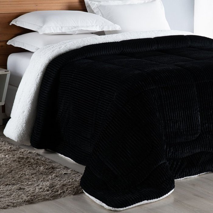 Coberdrom Cobertor Robust King Manta Canelada Sherpa Lã de Carneiro Pesado Grosso 1 Peça - Preto Cas