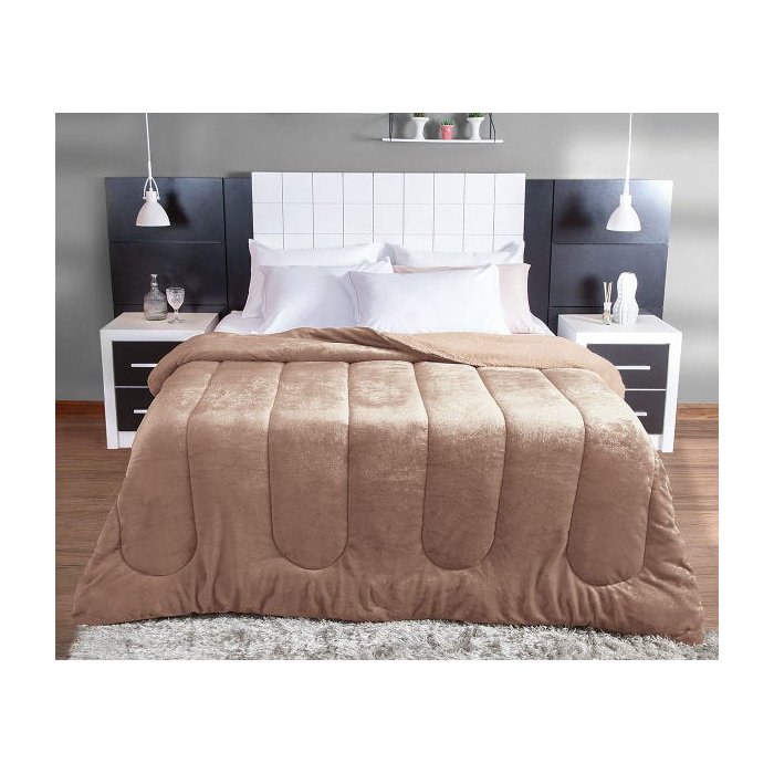 O coberdrom dupla face elaborado pela Lepper é um produto que alia os conceitos de cobertor e edredom, trazendo o melhor de cada um deles em uma única peça, super versátil. Com cor lisa, o lado superior é feito em Flannel, tecido com a mesma suavidade dos cobertores de microfibra de poliéster e de plush, trazendo conforto e maciez extrema. Já o lado inferior é feito em Sherpa, um tecido extremamente macio e suave ao toque, no estilo “lã de ovelha”. A composição da cor torna essa peça perfeita para deixar seu quarto muito mais bonito, elegante e sofisticado. Ideal para tornar sua cama ainda mais aconchegante e aquecida em noites de frio mais intenso.Informações básicas:Marca: LepperCaracterísticas:Material externo flannel: 100% poliésterMaterial externo sherpa: 100% poliésterMaterial enchimento: 100% poliésterEmbalagem: 1 coberdromEspecificações técnicas:Dimensões aprox. do coberdrom (A x L): 2,20 x 2,40 m