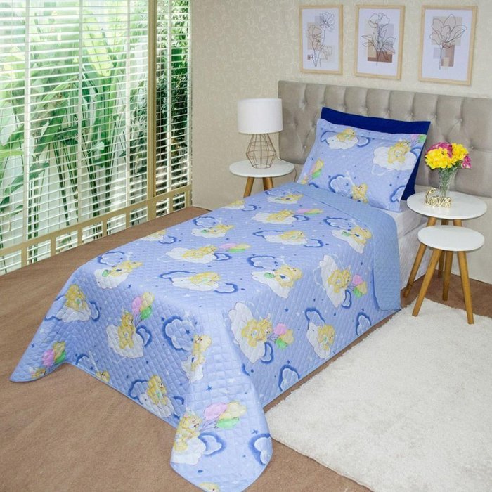 Coberdrom Edredom Solteiro Alegria Dupla Face Urso - Azul Única