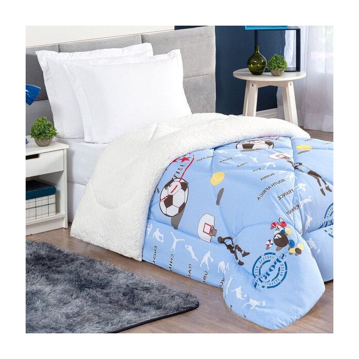 Coberdrom Pele de Carneiro Infantil Estampada Esporte Sherpa Solteiro 1,60m x 2,40m