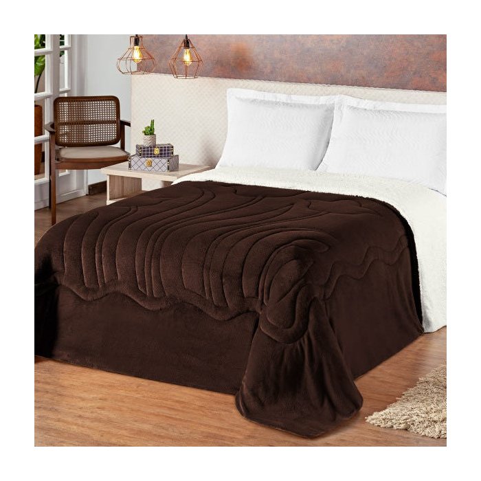 Coberdrom Sherpa Casal Queen Edredom Pele De Carneiro Desenho Exclusivo Tabaco