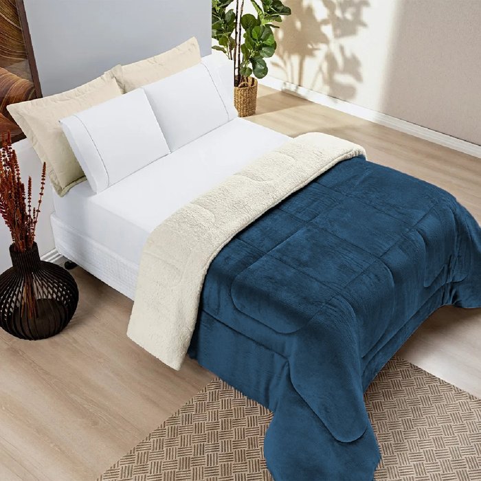 Coberdrom Sherpa com Manta Queen Dupla Face Azul Casen