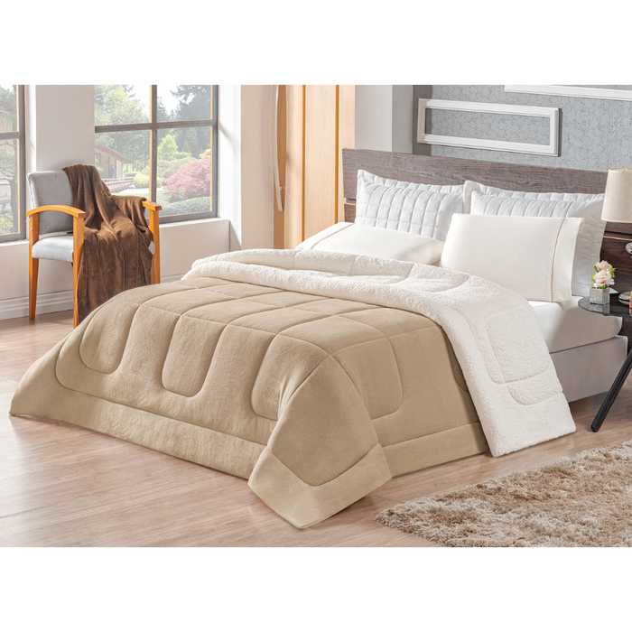 COBERDROM SOFT KING 1 PEÇAPRODUTO COMPOSTO POR: 01 Coberdrom Dupla Face 2,80m x 2,40m COMPOSIÇÃOTecido Superior: Manta Microfibra 100% PoliésterManta 100% PoliésterTecido Sherpa (Pele de carneiro) 100% Poliéster