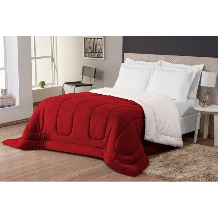 Coberdron Sherpa Casal Queen Edredom Pele De Carneiro Vermelho